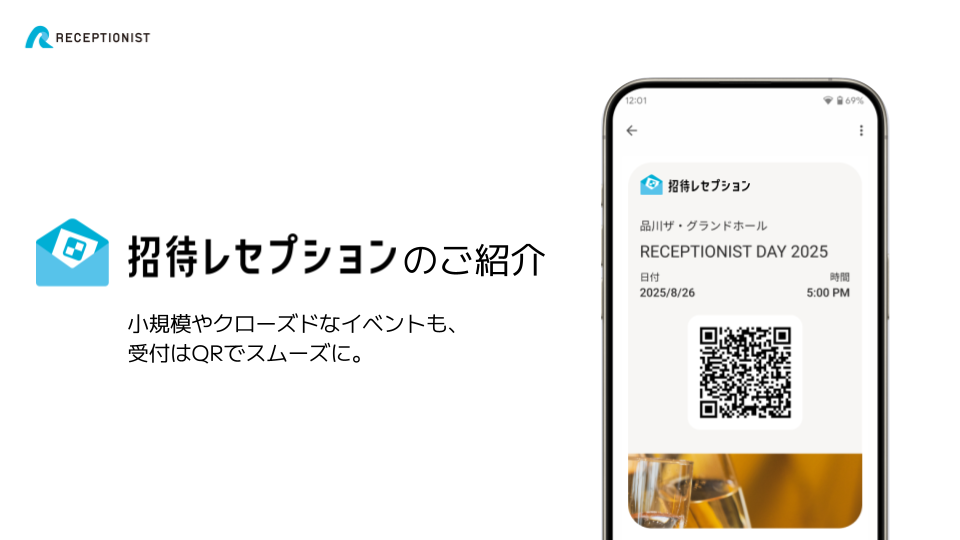招待レセプション サービス資料ページ数12ページ最終更新日2025年12月対象者イベント主催者・企業の総務ご担当者様資料の主な内容サービス概要、機能紹介、料金プラン、導入事例おすすめポイントQR受付の仕組み、料金体系、導入までの流れがわかるサービス資料の詳細です。